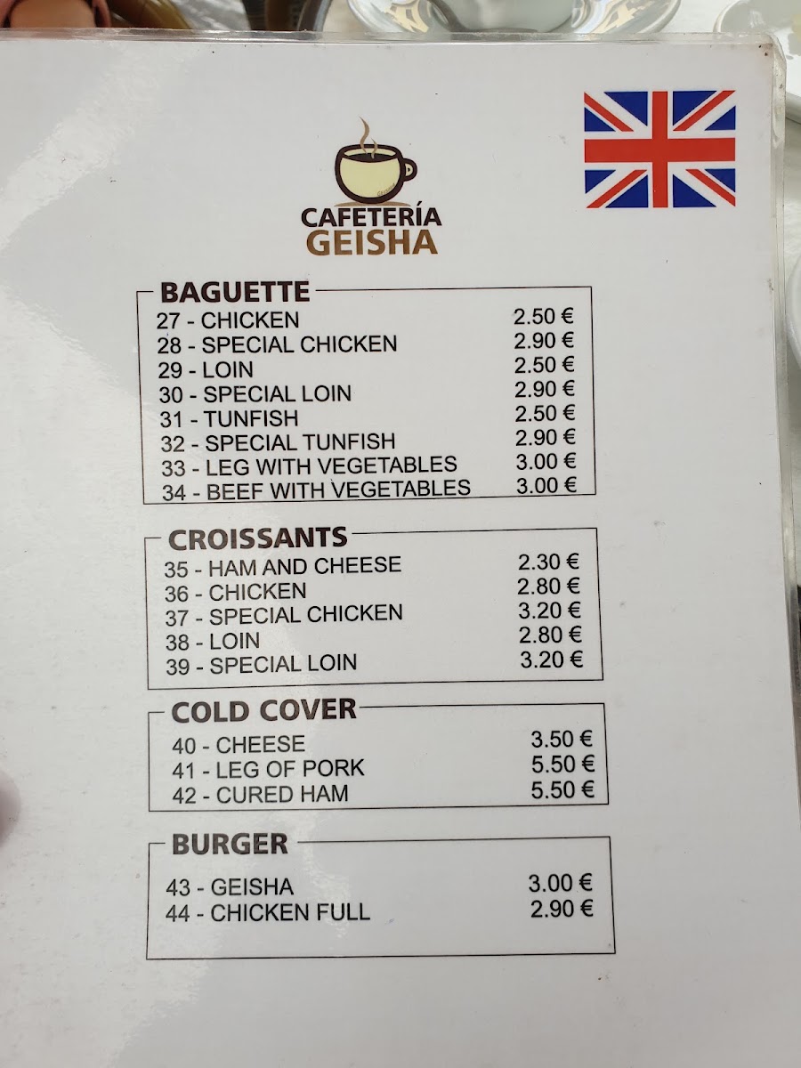 What truly sets Cafetería Geisha apart is its exceptional menu, filled with locally inspired offerings that promise to please every palate. Although the menu details weren't provided, customer favorites include their freshly made filled baguettes and delicious chicken baguette, as noted by Frances Phillips, who was captivated by the fantastic food at remarkably affordable prices. The ham and cheese croissant paired with a generous portion of chips is another standout choice that guarantees satisfaction.
